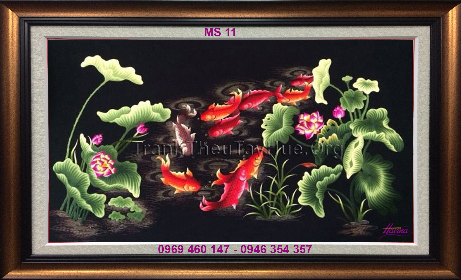 CHI TIẾT TÁC PHẨM TRANH THÊU CÁ CHÉP HOA SEN MS 11: