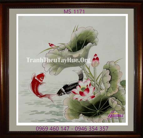 CHI TIẾT TÁC PHẨM TRANH THÊU CÁ CHÉP HOA SEN MS 1171: