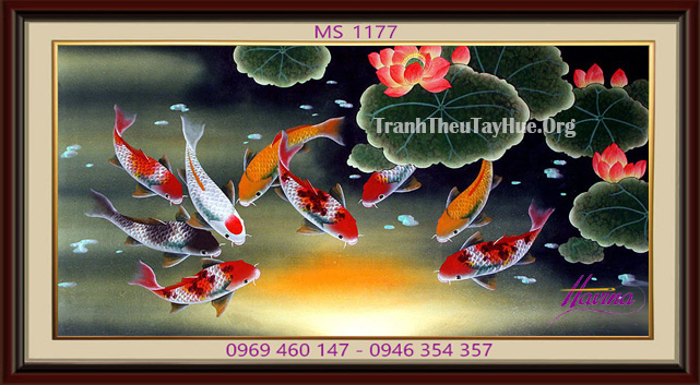 CHI TIẾT TÁC PHẨM TRANH THÊU CÁ CHÉP HOA SEN MS 1177: