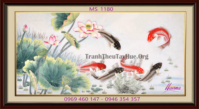 CHI TIẾT TÁC PHẨM TRANH THÊU CÁ CHÉP HOA SEN MS 1180: