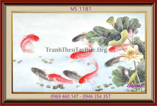 CHI TIẾT TÁC PHẨM TRANH THÊU CÁ CHÉP HOA SEN MS 1181: