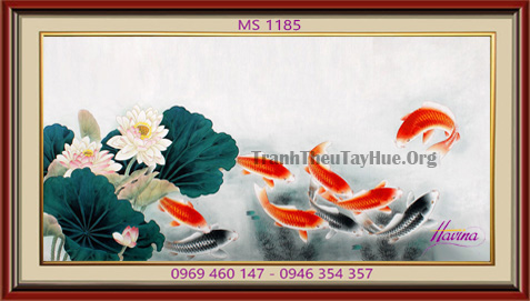 CHI TIẾT TÁC PHẨM TRANH THÊU CÁ CHÉP HOA SEN MS 1185: