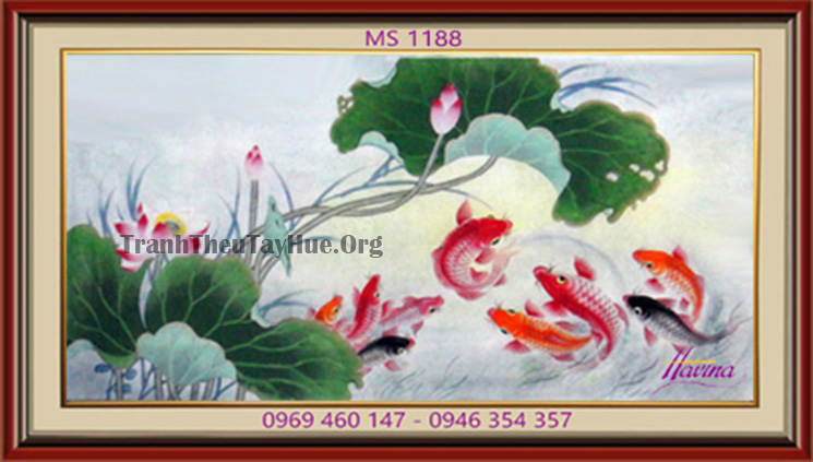 Tên tác phẩm: Tranh thêu cá chép hoa sen 1188