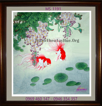 CHI TIẾT TÁC PHẨM TRANH THÊU CÁ CHÉP HOA SEN MS 1191: