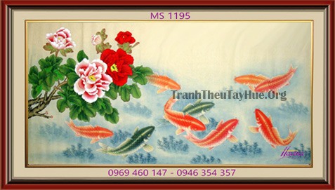 CHI TIẾT TÁC PHẨM TRANH THÊU CÁ CHÉP HOA SEN MS 1195: