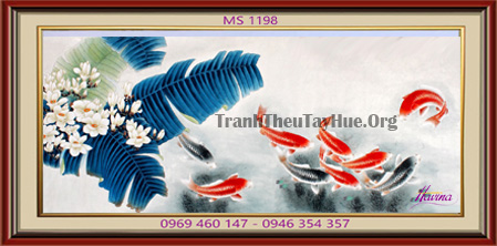 Tên tác phẩm: Tranh thêu cá chép hoa sen 1198