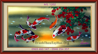 CHI TIẾT TÁC PHẨM TRANH THÊU CÁ CHÉP HOA SEN MS 1202: