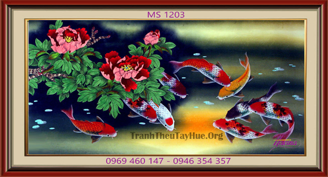CHI TIẾT TÁC PHẨM TRANH THÊU CÁ CHÉP HOA SEN MS 1203: