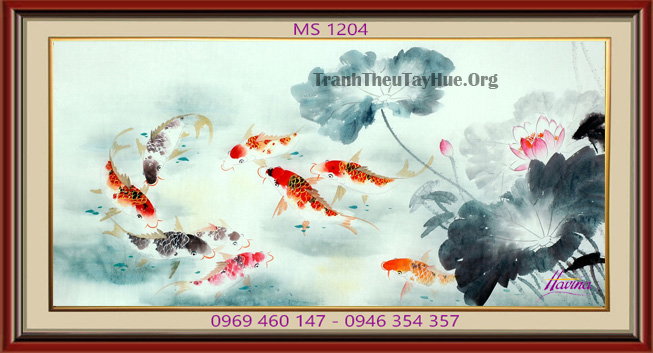 CHI TIẾT TÁC PHẨM TRANH THÊU CÁ CHÉP HOA SEN MS 1204: