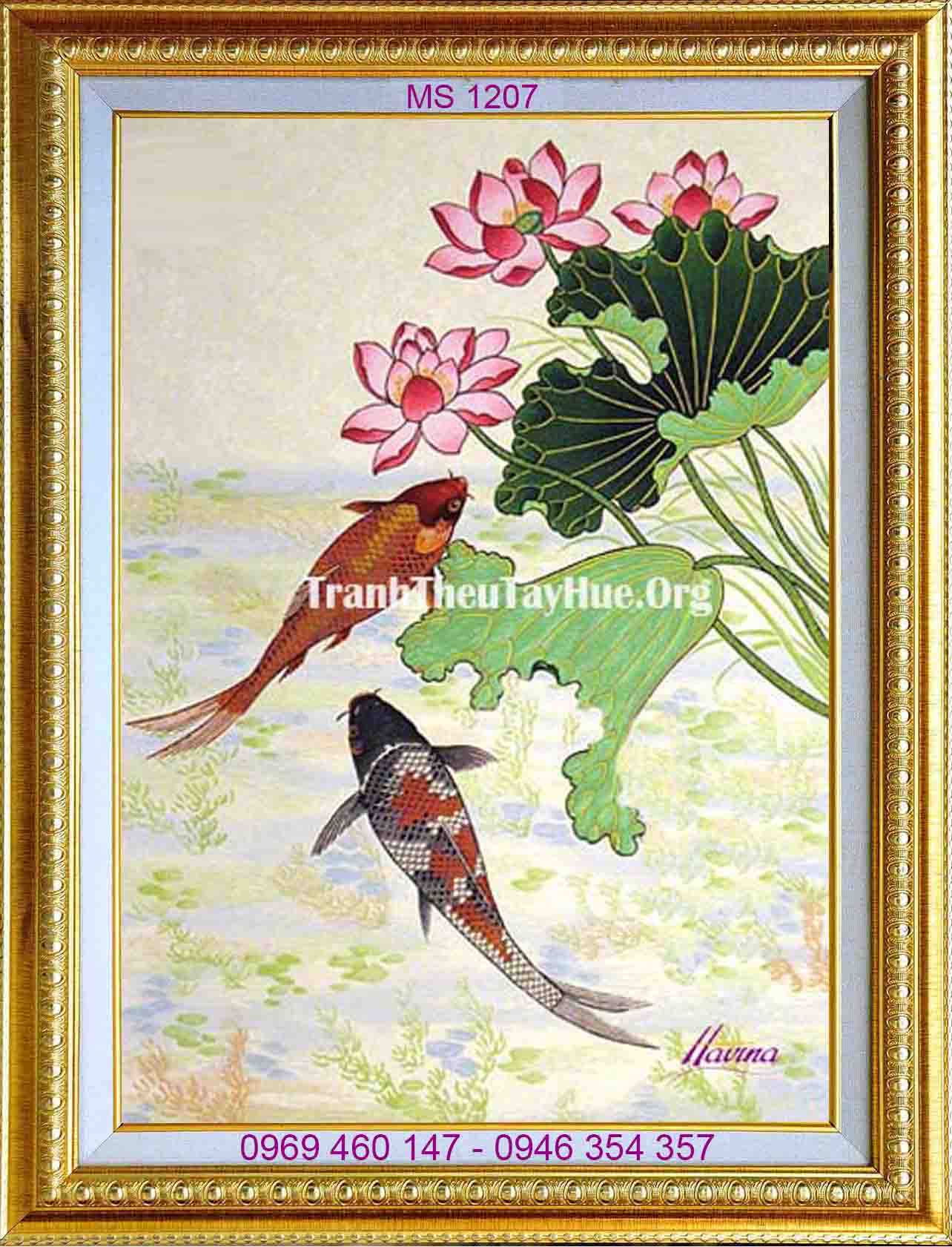 Tên tác phẩm: Tranh thêu cá chép hoa sen 1207