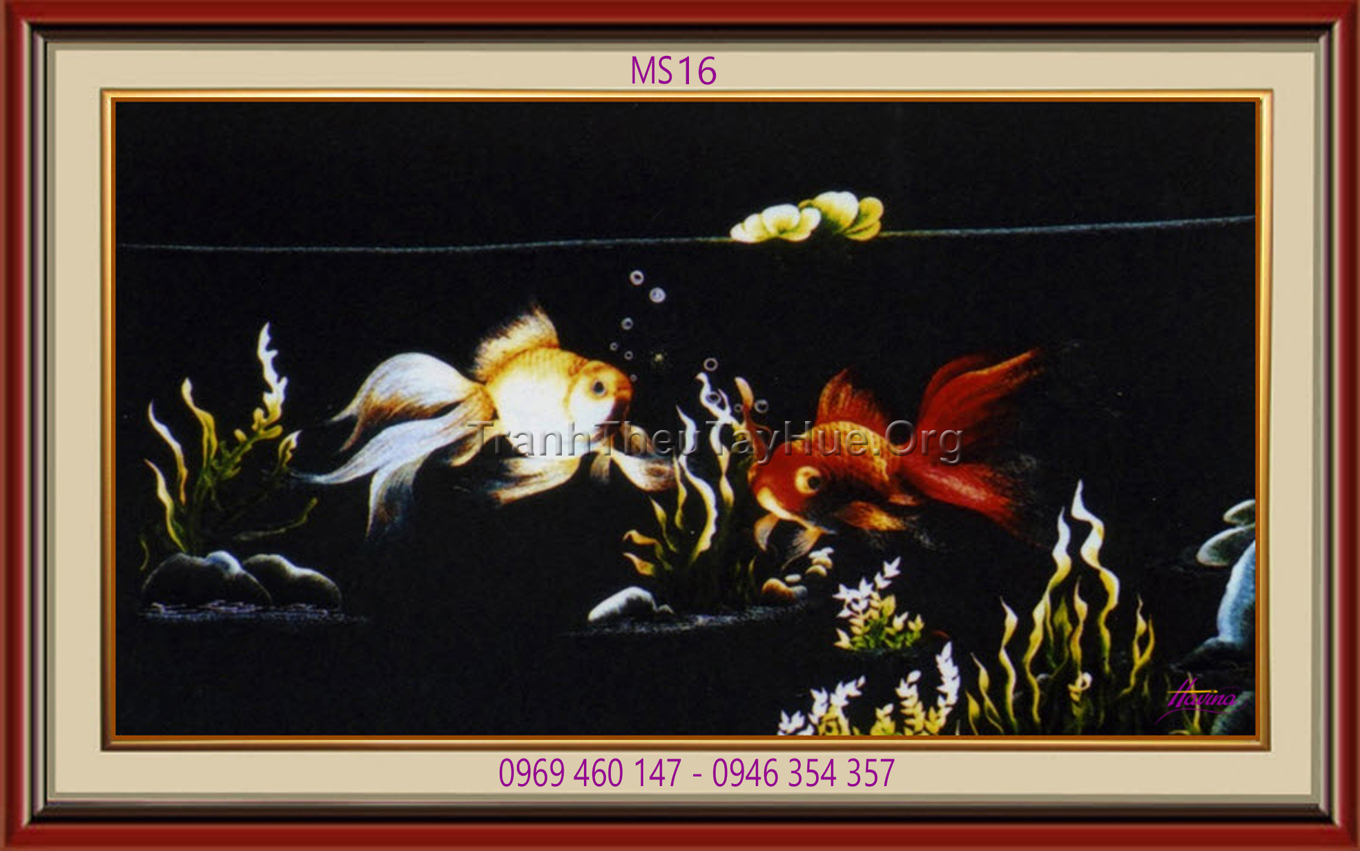 CHI TIẾT TÁC PHẨM TRANH THÊU CÁ CHÉP HOA SEN MS 16: