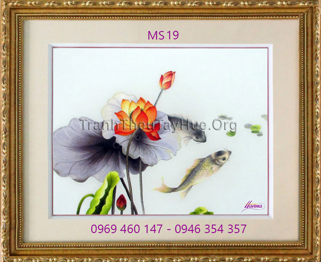 CHI TIẾT TÁC PHẨM TRANH THÊU CÁ CHÉP HOA SEN MS 19:
