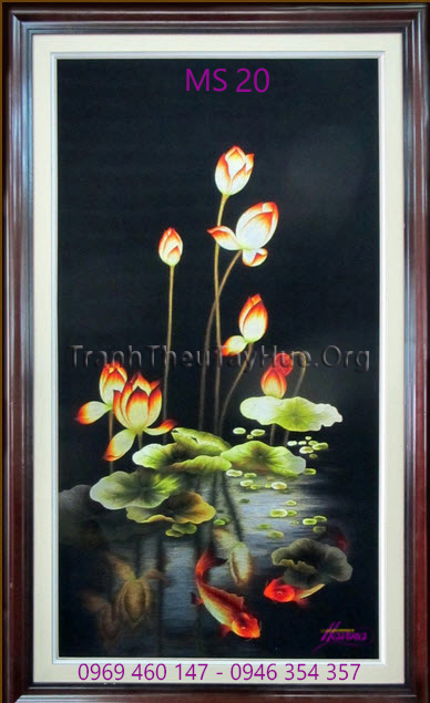 CHI TIẾT TÁC PHẨM TRANH THÊU CÁ CHÉP HOA SEN MS 20: