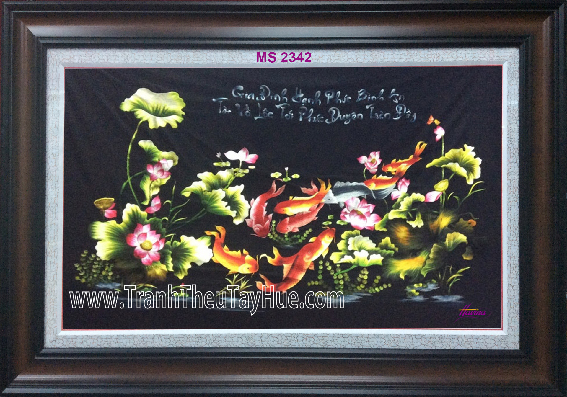 CHI TIẾT TÁC PHẨM TRANH THÊU CÁ CHÉP HOA SEN MS 2342: