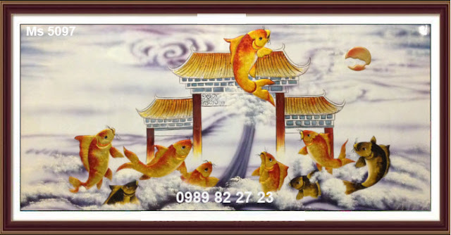 CHI TIẾT TÁC PHẨM TRANH THÊU CÁ CHÉP HOA SEN MS 5097: