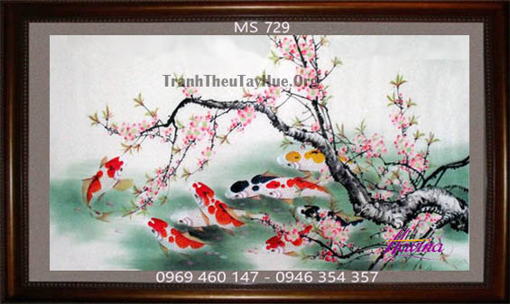 CHI TIẾT TÁC PHẨM TRANH THÊU CÁ CHÉP HOA SEN MS 729: