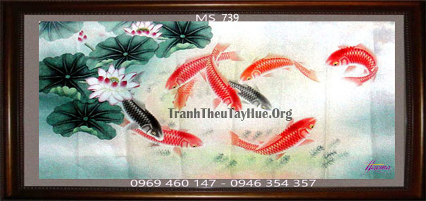 CHI TIẾT TÁC PHẨM TRANH THÊU CÁ CHÉP HOA SEN MS 739: