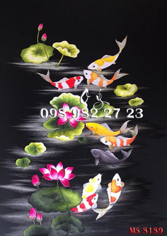 CHI TIẾT TÁC PHẨM TRANH THÊU CÁ CHÉP HOA SEN MS 8189: