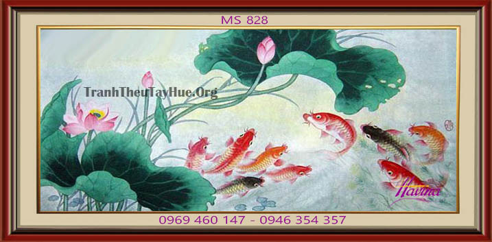 Tên tác phẩm: Tranh thêu cá chép hoa sen 828