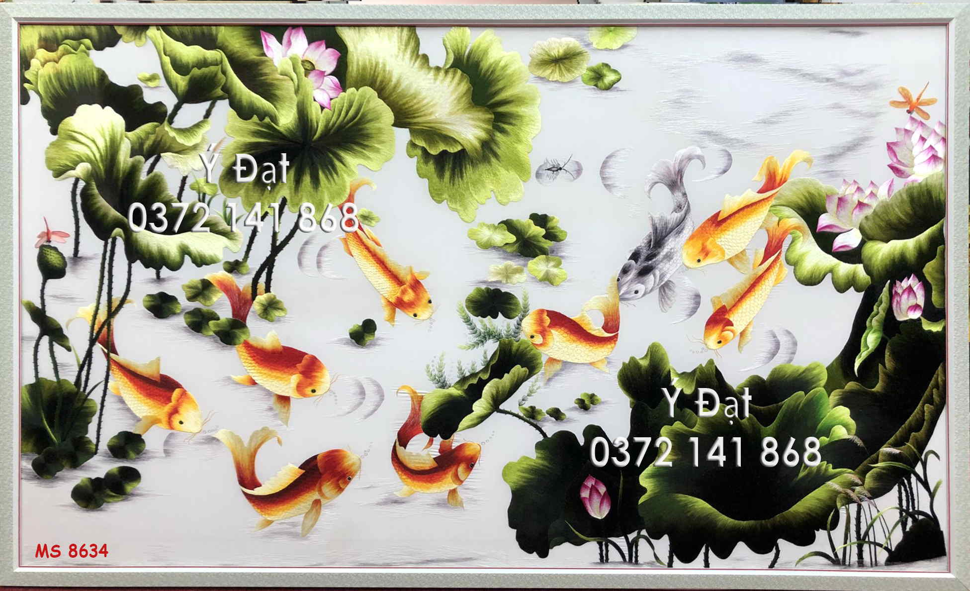 Tên tác phẩm: Tranh thêu cá chép hoa sen MS 8634