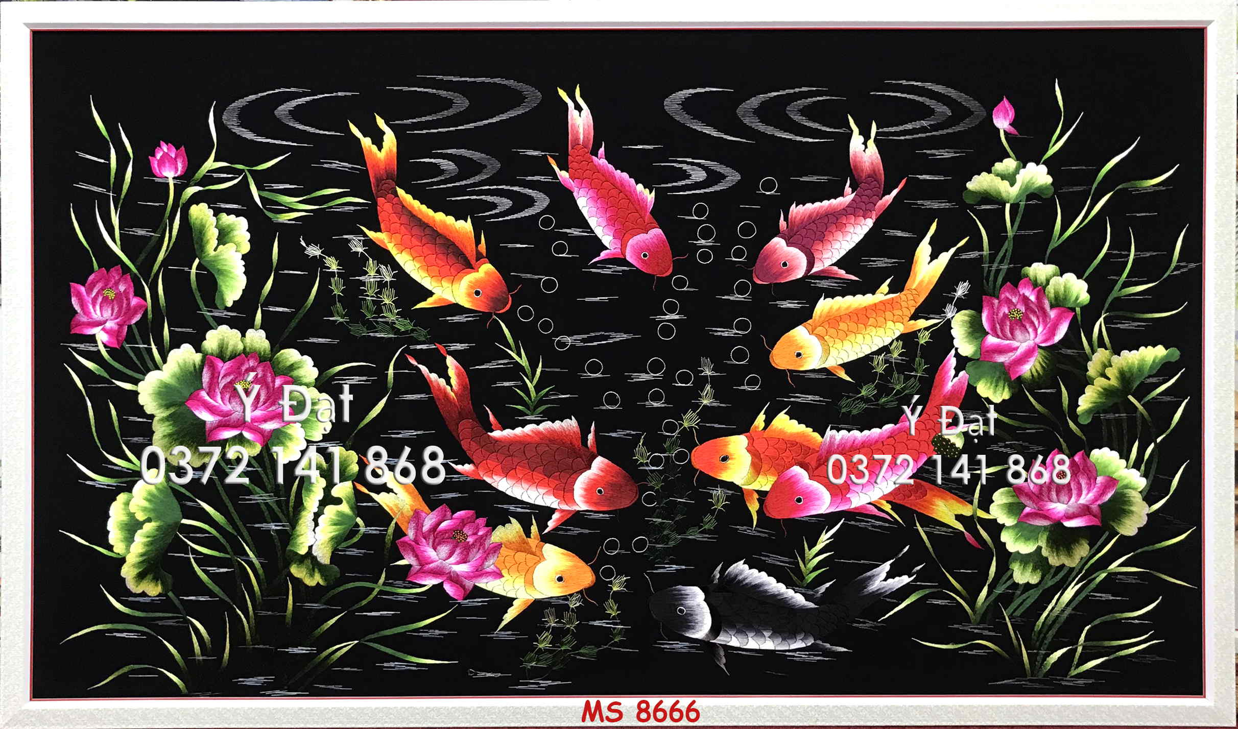 Tên tác phẩm: Tranh thêu cá chép hoa sen MS 8666