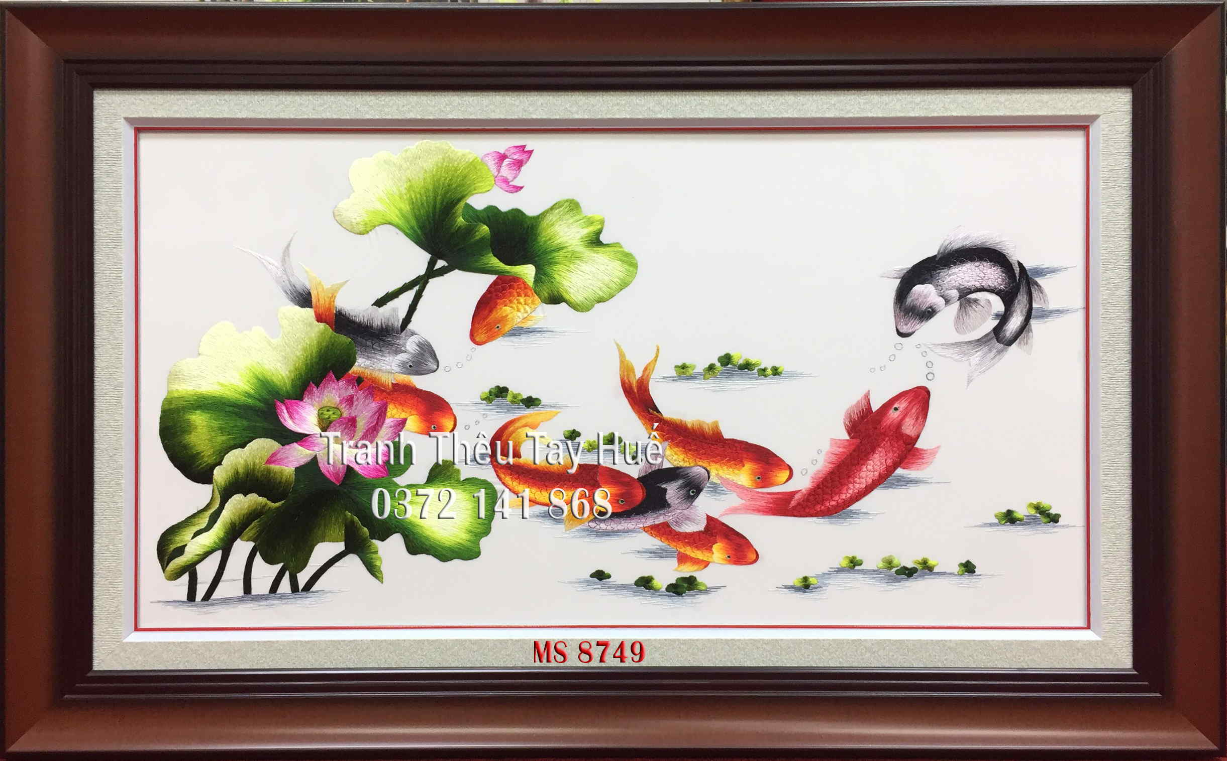 Tên tác phẩm: Tranh thêu cá chép hoa sen MS 8749