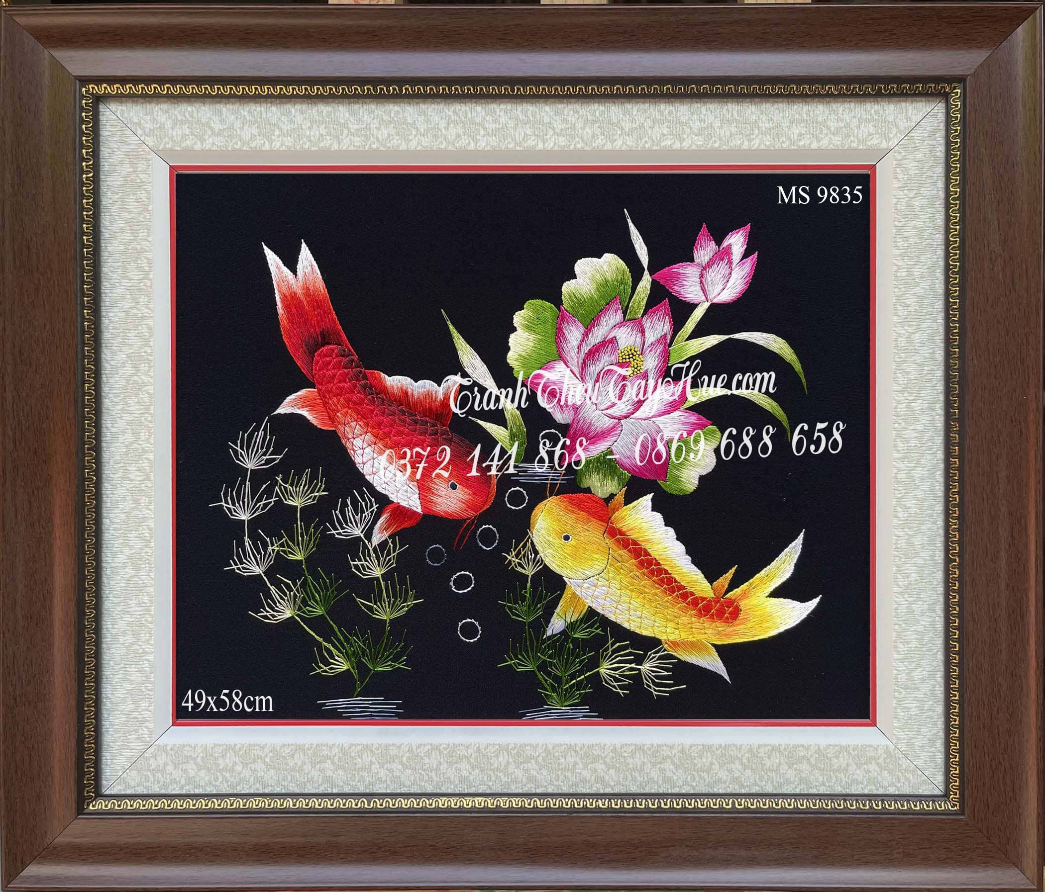 Tên tác phẩm: Tranh thêu cá chép hoa sen MS 9835