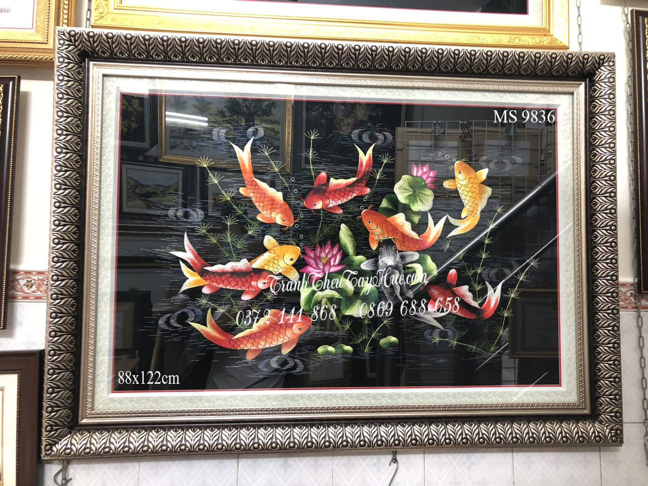 Tên tác phẩm: Tranh thêu cá chép hoa sen MS 9836