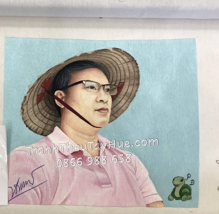- Tranh được thêu hoàn toàn bằng tay