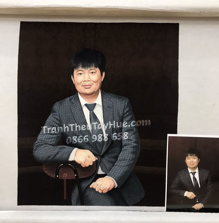 Tranh thêu chân dung Theo yêu cầu của anh Hoàng ở Cao Bằng