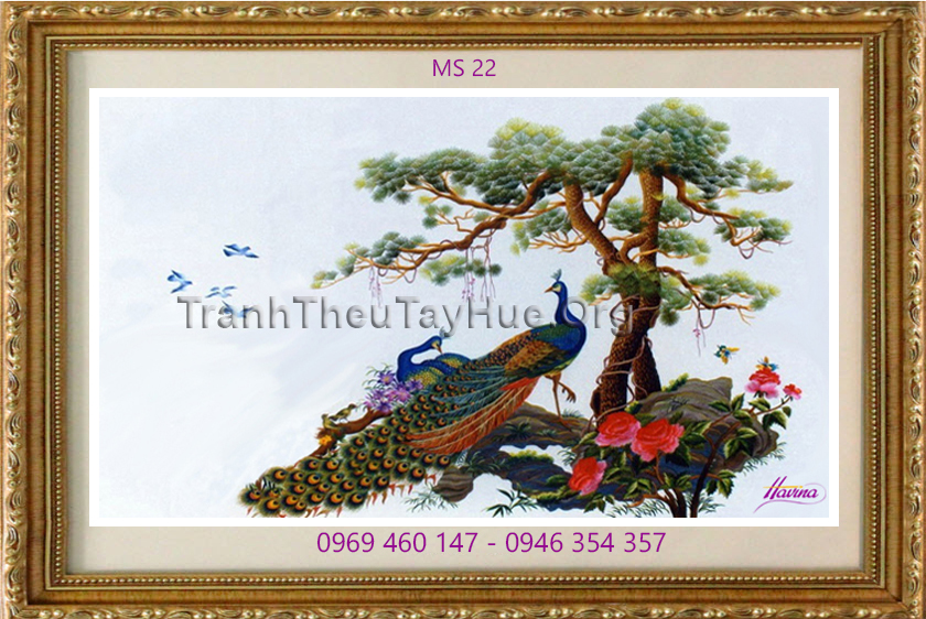 CHI TIẾT TÁC PHẨM TRANH THÊU CHIM CÔNG MS 22: