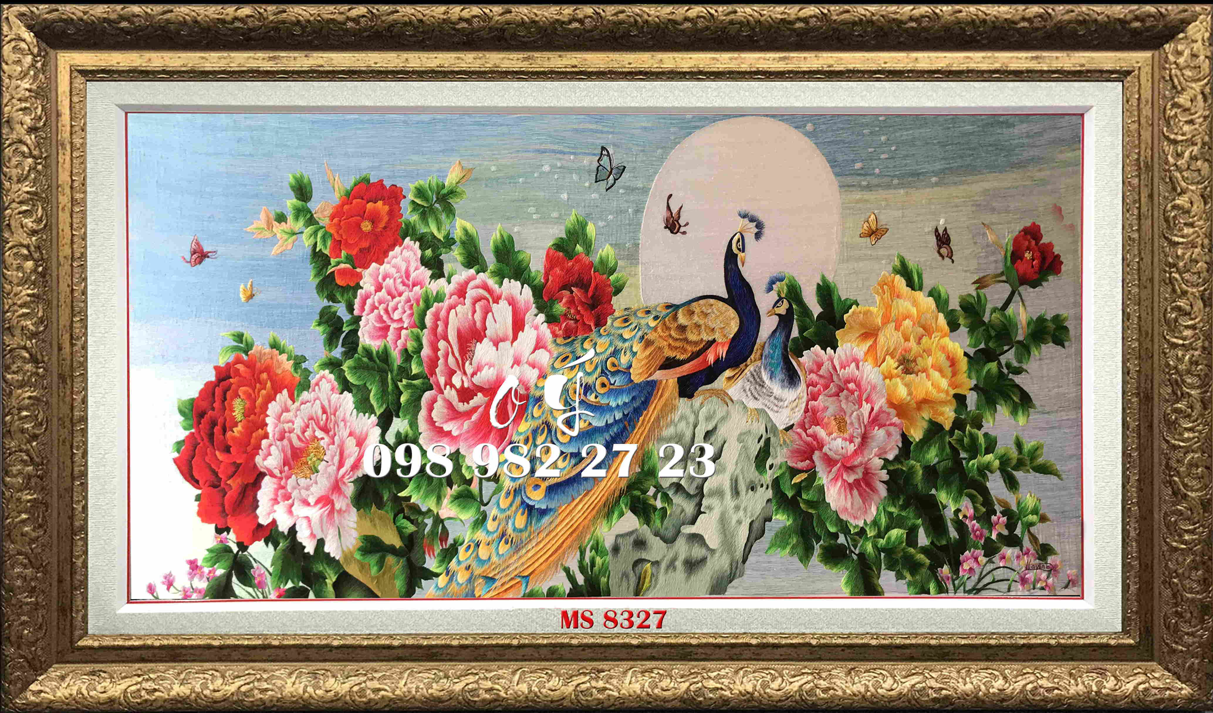 CHI TIẾT TÁC PHẨM TRANH THÊU CHIM CÔNG MS 8327: