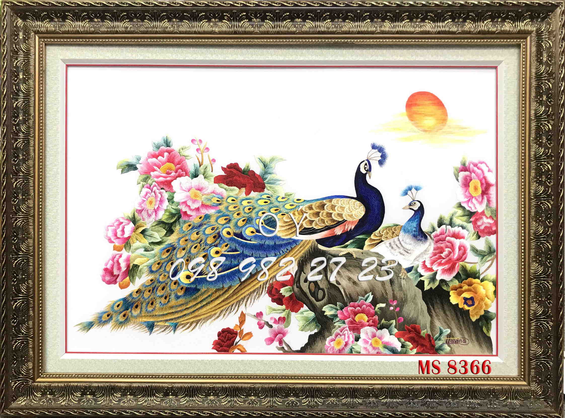 CHI TIẾT TÁC PHẨM TRANH THÊU CHIM CÔNG MS8366: