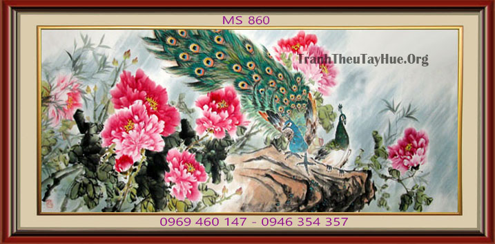CHI TIẾT TÁC PHẨM TRANH THÊU CHIM CÔNG MS 860: