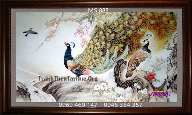 CHI TIẾT TÁC PHẨM TRANH THÊU CHIM CÔNG MS 883: