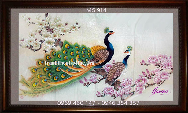 CHI TIẾT TÁC PHẨM TRANH THÊU CHIM CÔNG MS 914:
