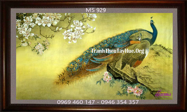 CHI TIẾT TÁC PHẨM TRANH THÊU CHIM CÔNG MS 929: