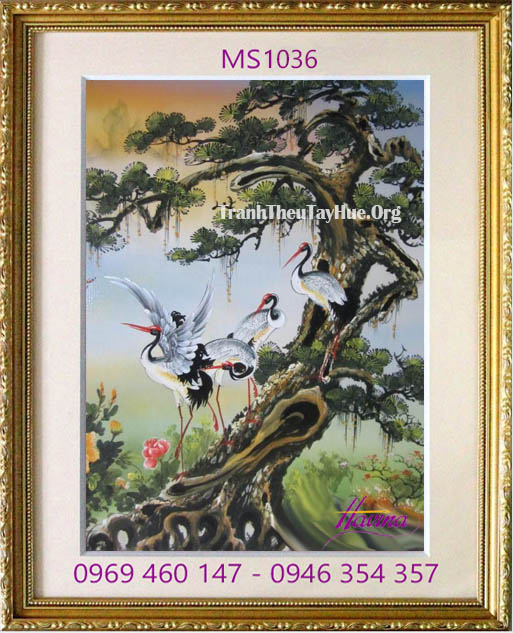 Tên tác phẩm: Tranh thêu chim hạc MS 1036