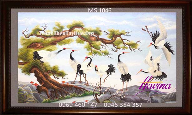 Tên tác phẩm: Tranh thêu chim hạc MS 1046