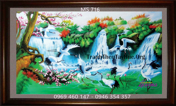 CHI TIẾT TÁC PHẨM TRANH THÊU CHIM HẠC MS 716: