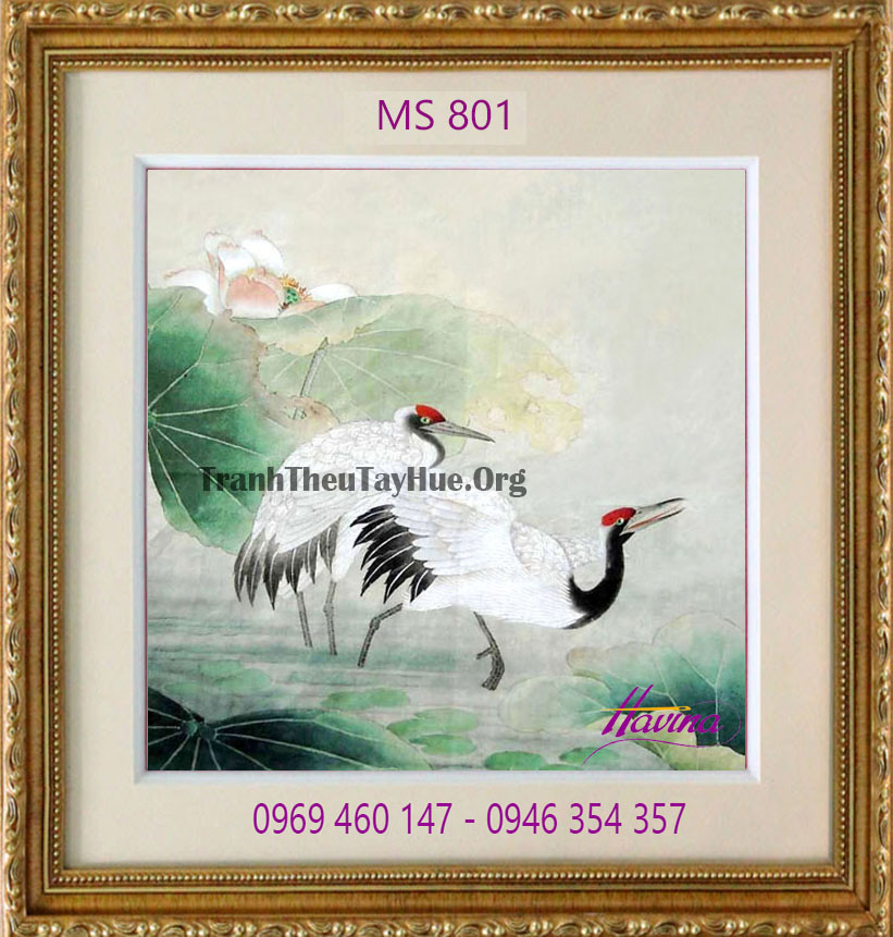 CHI TIẾT TÁC PHẨM TRANH THÊU CHIM HẠC MS 801: