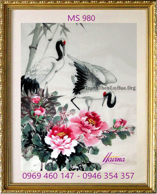 CHI TIẾT TÁC PHẨM TRANH THÊU CHIM HẠC MS 980: