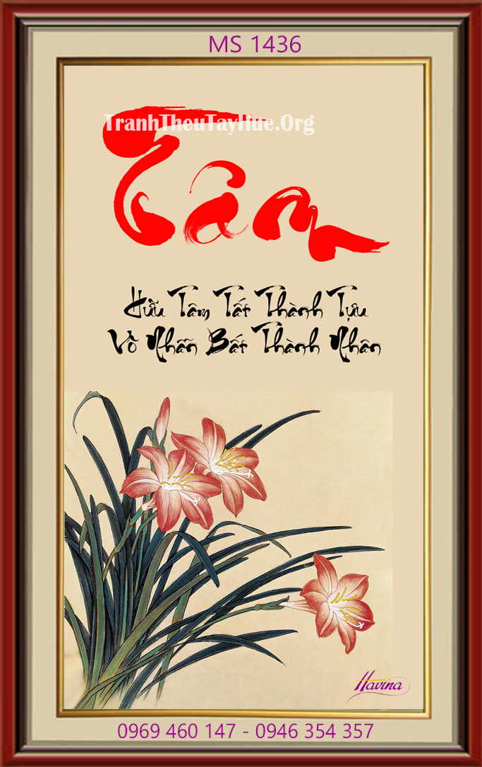 CHI TIẾT TÁC PHẨM TRANH THÊU CHỮ TÂM MS 1436: