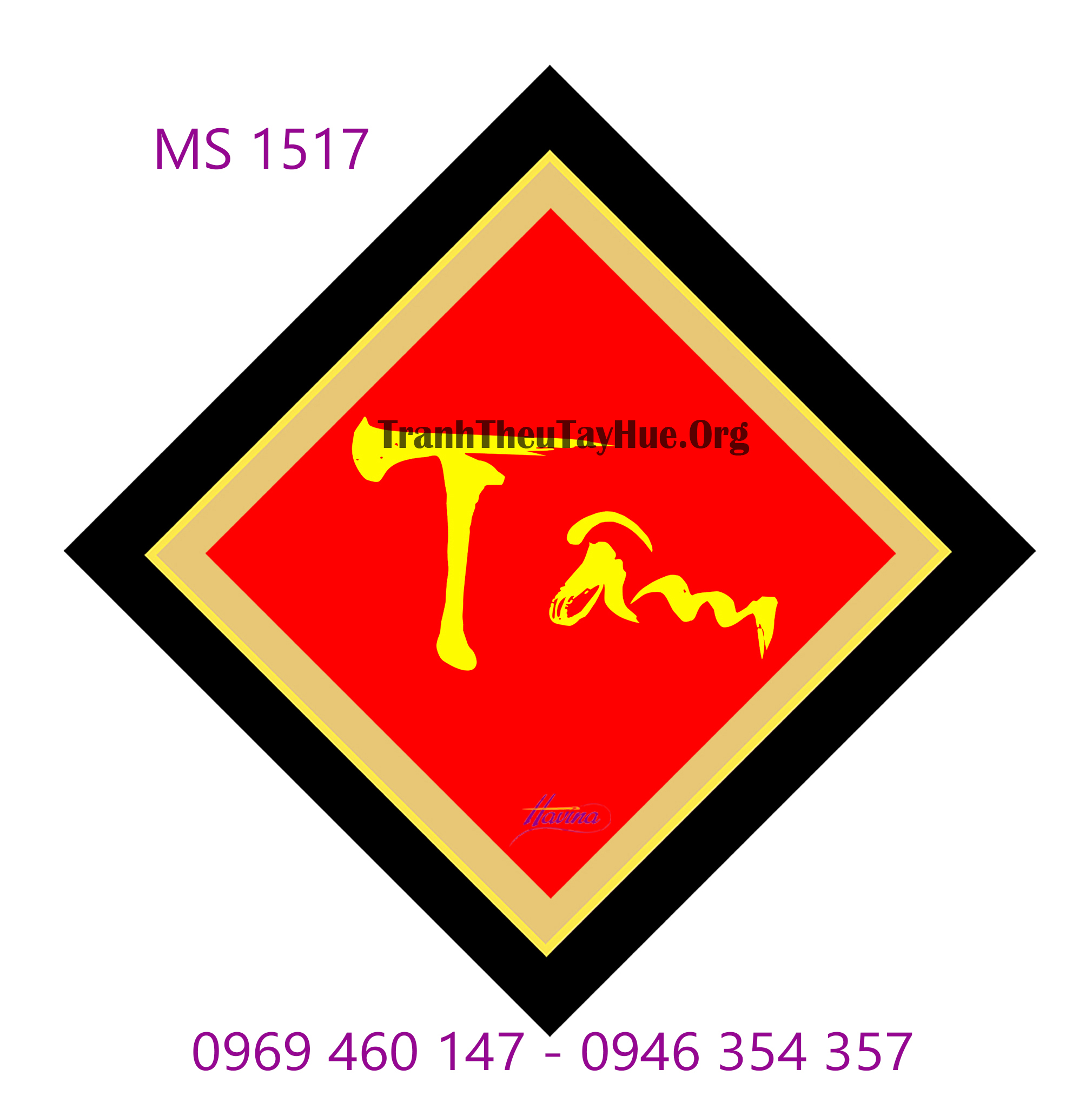 CHI TIẾT TÁC PHẨM TRANH THÊU CHỮ TÂM MS 1517: