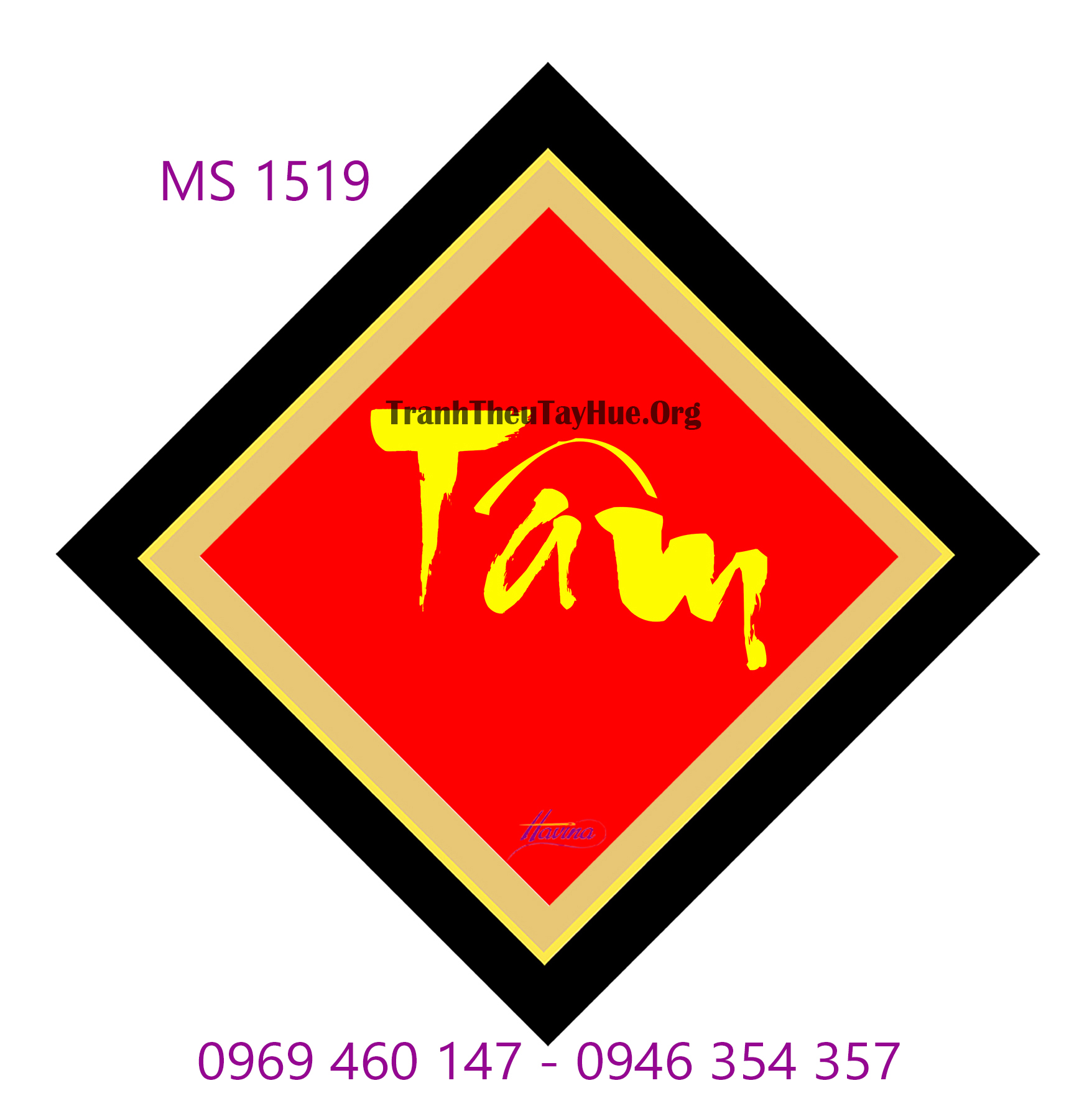 CHI TIẾT TÁC PHẨM TRANH THÊU CHỮ TÂM MS 1519: