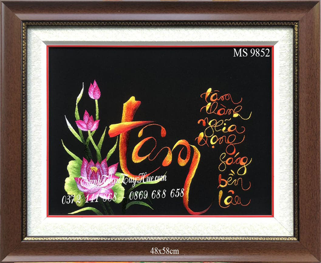 CHI TIẾT TÁC PHẨM TRANH THÊU CHỮ TÂM MS 9852: