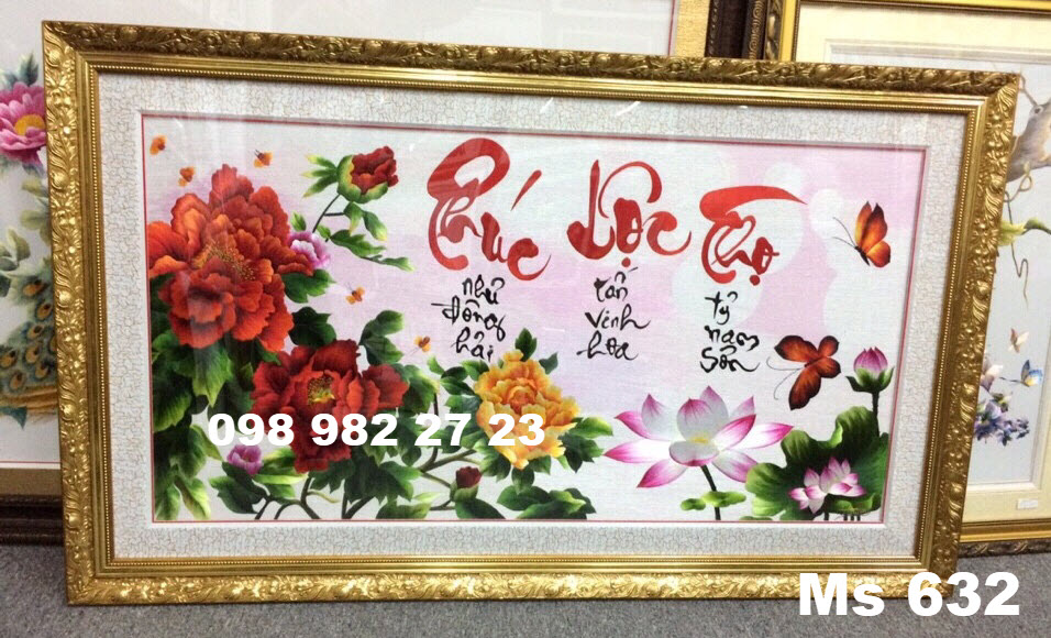 Tranh thêu tay Phúc lộc thọ làm quà mừng thọ cha mẹ, ông bà. Giao hàng tận nơi miễn phí. Showroom tại Tphcm