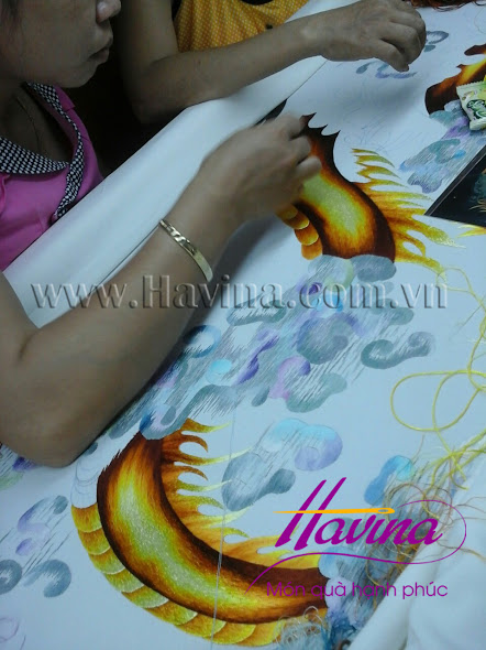 Nguyên liệu được sử dụng: Chỉ tơ kết hợp với chỉ DMC Pháp thêu trên vải lụa