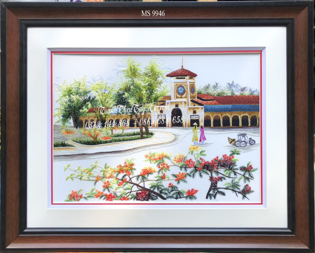 Tranh chợ bến thành được thêu bằng tay bởi nghệ nhân với hơn 20 năm kinh nghiệm