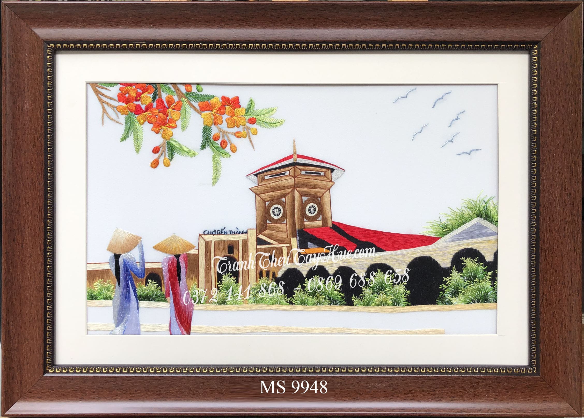 Tranh chợ bến thành được thêu bằng tay bởi nghệ nhân với hơn 20 năm kinh nghiệm
